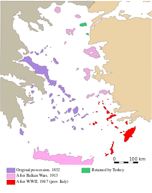 There have been a number of disputes related to the territories of the Greek islands themselves. These have related to the demilitarized status of some of the main islands in the area; to Turkish concerns over alleged endeavours by Greece to artificially expand settlements to previously uninhabited islets; and to the existence of alleged "grey zones", an undetermined number of small islands of undetermined sovereignty.[بحاجة لمصدر]