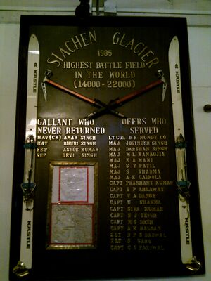 {{cite web}}:|last=has generic name (help) - ^ "Indian army officers killed in Siachen fire – BBC News". BBC News (in الإنجليزية البريطانية). Archived from the original on 19 فبراير 2016. Retrieved 5 فبراير 2016.