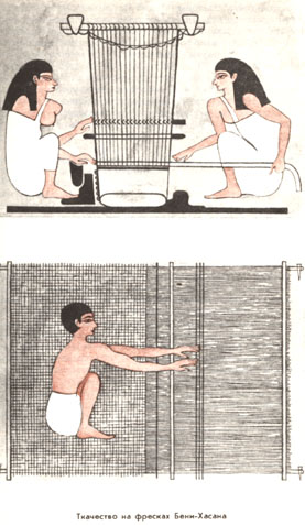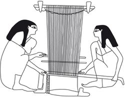 يوضح الشكل (4) نول نسيج يونانياً قديماً كان مستعملاً في منتصف القرن الخامس قبل الميلاد ويبين أن الأسدية كانت شاقولية؛ أي تربط خيوطها على عارضة أفقية، ثم تمد لتمر فوق عارضة أخرى مقابلة للأولى (سمسمة) كانت مسنداً خلفياً للأسدية، ثم تعلق في نهايات الخيوط أثقال حجرية لشدها وكان هذا النول يتألف من العناصر الأساسية الآتية: