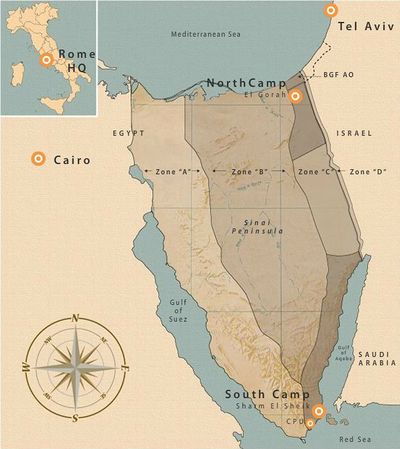 (2) تتمركز في المنطقة "جـ" قوات الأمم المتحدة والشرطة المدنية المصرية فقط.