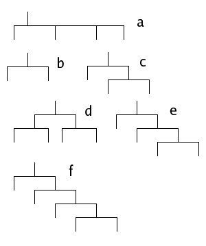 Hierarchical multiple star systems with more than three stars can produce a number of more complicated arrangements. These arrangements can be organized by what Evans (1968) called mobile diagrams, which look similar to ornamental mobiles hung from the ceiling. Examples of hierarchical systems are given in the figure to the right (Mobile diagrams). Each level of the diagram illustrates the decomposition of the system into two or more systems with smaller size. Evans calls a diagram multiplex if there is a node with more than two children, i.e. if the decomposition of some subsystem involves two or more orbits with comparable size. Because, as we have already seen for triple stars, this may be unstable, multiple stars are expected to be simplex, meaning that at each level there are exactly two children. Evans calls the number of levels in the diagram its hierarchy.[10]