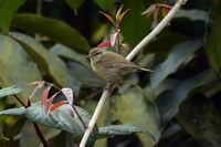 The nest is on the ground in low shrub. Like its relatives, this small passerine is insectivorous.