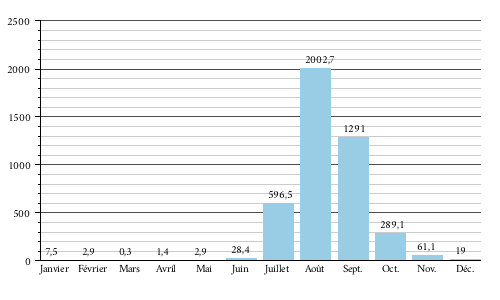 متوسط التدفق الشهري (م³/ث) مقاساً عند محطة الري عند الكيلو 3 - حوض التجميع: 69,000 كم²- بيانات الفترة 1912-1982[1]