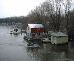 Community of boathouses on the Mississippi River in Winona, MN (2006)