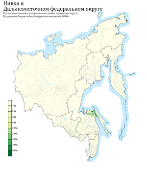 The Nivkh, or Gilyak (also Nivkhs or Nivkhi, or Gilyaks; ethnonym: Нивхгу, Nʼivxgu (Amur) or Ниғвңгун, Nʼiɣvŋgun (E. Sakhalin) "the people"),[3] are an Indigenous ethnic group inhabiting the northern half of Sakhalin Island and the lower Amur River and coast on the adjacent Russian mainland. Historically, they may have inhabited parts of Manchuria.