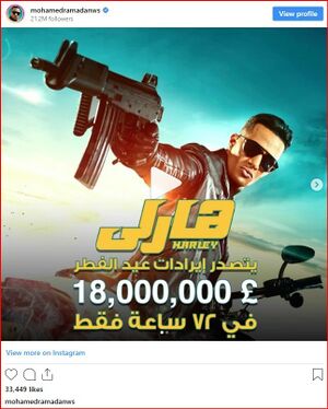 في 24 ابريل 2023 احتفل الفنان محمد رمضان مع جمهوره بنجاح فيلمه هارلي وقام بنشر بوستر الفيلم معلقا إيرادات مصر فقط اكثر من 18 مليون.. الحمد لله كثيراً».