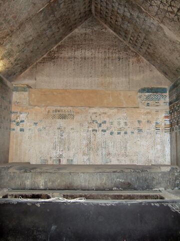 4. ^ In Unas's pyramid, only the south sections of the horizontal passage was inscribed.[99][37] Teti's pyramid received the same treatment, though the pyramids of Merenre and Pepi II had writings throughout the entire horizontal passage and the vestibule with the three granite portcullises, and Pepi I's pyramid also had writings on a section of the ascending corridor as well.[99]