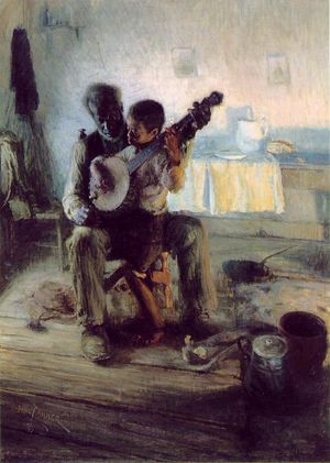 هنري أوساوا تانر، درس البانجو، 1893. زيت على كانڤا، 49" x 35 1/2". متحف جامعة هامپتون.