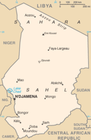 وحدة:Location map/data/Chad is a location map definition used to overlay markers and labels on an equirectangular projection map of Chad. The markers are placed by latitude and longitude coordinates on the default map or a similar map image.