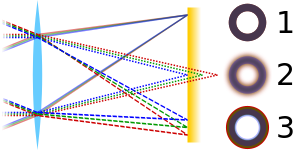 - ^ أ ب Ye, Ming; Bradley, Arthur; Thibos, Larry N.; Zhang, Xiaoxiao (1991). "Interocular differences in transverse chromatic aberration determine chromostereopsis for small pupils". Vision Research. 31 (10): 1787–96. doi:10.1016/0042-6989(91)90026-2. PMID 1767497. S2CID 42856379.