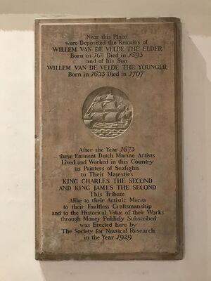 After his move to England, the exact date of which is uncertain, but reportedly at the end of 1672 or beginning of 1673, he is said to have lived with his family in East Lane, Greenwich, and to have used the Queen's House, now part of the National Maritime Museum in Greenwich, as a studio. Following the accession of William III and Mary II as King and Queen of England, it appears that this facility was no longer provided, and by 1691 he was living in Sackville Street, now close to Piccadilly Circus. He died in London, and was buried in St James's Church, Piccadilly, at the south end of the street. A memorial to him and his son lies with in the church.