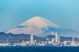 منظر جبل فوجي ووسط يوكوسوكا، من يبدو من قناة أوراگا  |