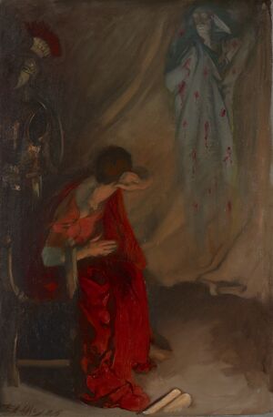 Brutus then attacks Cassius for supposedly soiling the noble act of regicide by having accepted bribes. ("Did not great Julius bleed for justice' sake? / What villain touched his body, that did stab, / And not for justice?"[3]) The two are reconciled, especially after Brutus reveals that his beloved wife committed suicide under the stress of his absence from Rome; they prepare for a civil war against Antony, Caesar's adopted son Octavius, and Lepidus who have formed a triumvirate in Rome. That night, Caesar's ghost appears to Brutus with a warning of defeat. (He informs Brutus, "Thou shalt see me at Philippi."[4])