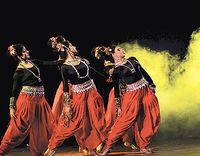 مجموعة من الراقصات في احد العروض بمدينة كالكتا في مهرجان الرقص العالمي 2007.