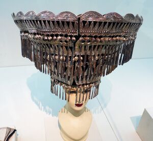 Some historians believe that the majority of the kingdom of Nanzhao were of the Bai people,[10] but that the elite spoke a variant of Nuosu (also called Yi), a Tibeto-Burman language closely related to Burmese.[11] The Cuanman people came to power in Yunnan during Zhuge Liang's Southern Campaign in 225. By the fourth century they had gained control of the region, but they rebelled against the Sui dynasty in 593 and were destroyed by a retaliatory expedition in 602. The Cuan split into two groups known as the Black and White Mywa.[12] The White Mywa (Baiman) tribes, who are considered the predecessors of the Bai people, settled on the fertile land of western Yunnan around the alpine fault lake Erhai. The Black Mywa (Wuman), considered to be predecessors of the Yi people, settled in the mountainous regions of eastern Yunnan. These tribes were called Mengshe (蒙舍), Mengxi (蒙嶲), Langqiong (浪穹), Tengtan (邆賧), Shilang (施浪), and Yuexi (越析). Each tribe was known as a zhao.[13] In academia, the ethnic composition of the Nanzhao kingdom's population has been debated for a century. Chinese scholars tend to favour the theory that the rulers came from the aforementioned Bai or Yi groups, while some non-Chinese scholars subscribed to the theory that the Tai ethnic group was a major component, that later moved south into modern-day Thailand and Laos.[14]