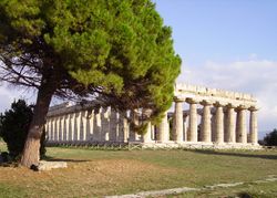 پستم تضم ثلاثة من أسلم المعابد اليونانية القديمة في العالم، بما فيهم معبدا هيرا الظاهرين هنا. | |