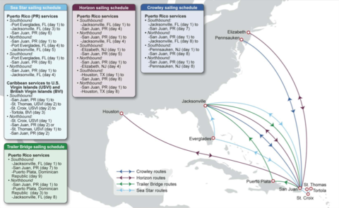 خريطة قانون جونز carrier routes لپورتو ريكو.