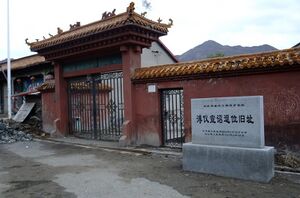 Puyi became a devoted Buddhist, a mystic and a vegetarian, having statues of the Buddha put up all over the Salt Tax Palace for him to pray to while banning his staff from eating meat. His Buddhism led him to ban his staff from killing insects or mice, but if he found any insects in his food, the cooks were flogged.[147] One day, when out for a stroll in the gardens, Puyi found that a servant had written in chalk on one of the rocks: "Haven't the Japanese humiliated you enough?"[148] When Puyi received guests at the Salt Tax Palace, he gave them long lectures on the "glorious" history of the Qing as a form of masochism, comparing the great Qing Emperors with himself, a miserable man living as a prisoner in his own palace.[149] Wanrong, who detested her husband, liked to mock him behind his back by performing skits before the servants by putting on dark glasses and imitating Puyi's jerky movements. During his time in Tianjin, Puyi had started wearing dark glasses at all times. During the interwar period, dark glasses were worn by Tianjin's homosexual "tiny minority" to signify their orientation. Although Puyi likely knew this, surviving members of his court said that he "really was subject to eye strain and headaches from the sun's glare".[150]