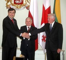 Mikheil Saakashvili, Lech Kaczyński and Valdas Adamkus in Tbilisi, November 2007