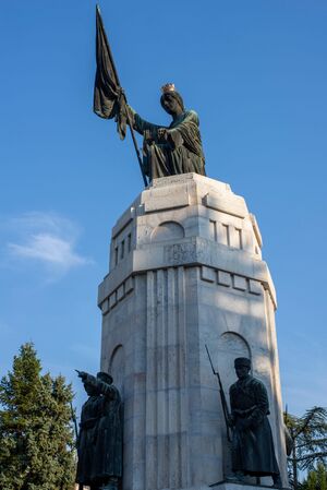 The anthem of the city is Shishman's song, dedicated to the last Bulgarian king of the Second Bulgarian Kingdom. The coat of arms of Tarnovo depicts a figure with three lions. Purple color was used for the flag of the city, because during the excavations in the church "St. Forty Martyrs "were found clothes of rulers in purple. There is also a key and a necklace of Veliko Tarnovo. [6] The first known coat of arms of the city is from 1921 by Dimitar Bagrilov.