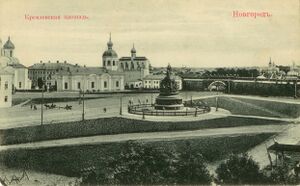 Counter-Clockwise: the Millennium of Russia, cathedral of St. Sophia, the fine arts museum, St. George's Monastery, the Kremlin, Yaroslav's Court  | |||||||||||||||