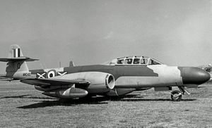 گلوستر متيور Gloster Meteor ، أول مقاتلة بريطانية بمحرك نفاث ، كان أول تحليق لها في عام 1943، وبدأت عملياتها في 27 يوليو 1944 .