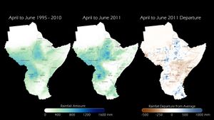 Rainfall levels in the larger East Africa region from 1995 to 2011.