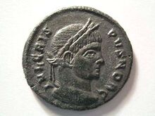 - القيصر الروماني كريسپوس، بعد نجاح حملته ضد الألماني، يصك أول عملاته.