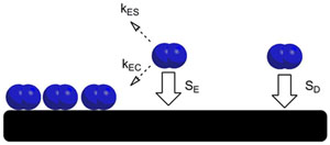 • معدل تكوين الهيكل الثاني يمليه مقدار الامتزاز شاغلاً الهيكل الأول والتفاعلات بين الجزيئات في وقت الغمر، t.