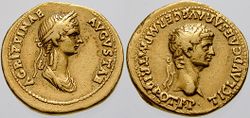 - being honoured with a new type of coinage, depicting images of Caligula and his sisters on opposite faces;
