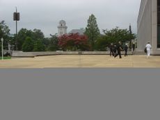 A monument at US Naval Academy marks the path of Michelson's experiments measuring the speed of light.