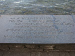لوح تذكاري في حي شيپفه في زيورخ لمجددي العماد، أقيم في مطلع القرن 16 من قِبل حكومة مدينة زيورخ