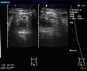 Ultrasonography and Doppler sonography provide useful means to detect appendicitis, especially in children. In some cases (15% approximately), however, ultrasonography of the iliac fossa does not reveal any abnormalities despite the presence of appendicitis. This is especially true of early appendicitis before the appendix has become significantly distended and in adults where larger amounts of fat and bowel gas make actually seeing the appendix technically difficult. Despite these limitations, in experienced hands sonographic imaging can often distinguish between appendicitis and other diseases with very similar symptoms such as inflammation of lymph nodes near the appendix or pain originating from other pelvic organs such as the ovaries or fallopian tubes.