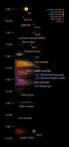 |    Sun Jupiter trojans Orbits of planets  |     Asteroid belt Hilda asteroids (Hildas) Near-Earth objects (selection)  |