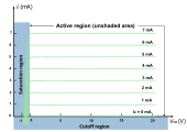 - In cut-off, biasing conditions opposite of saturation (both junctions reverse biased) are present. There is very little current, which corresponds to a logical "off", or an open switch.