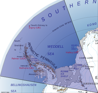 The British Antarctic Territory (BAT) is a sector of Antarctica claimed by the United Kingdom as one of its 14 British Overseas Territories, of which it is by far the largest by area. It comprises the region south of 60°S latitude and between longitudes 20°W and 80°W, forming a wedge shape that extends to the South Pole, overlapping the Antarctic claims of Argentina (Argentine Antarctica) and Chile (Chilean Antarctic Territory).