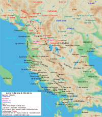 - ^ Wilkes, J. J. The Illyrians. Blackwell Publishing, 1992, ISBN 0-631-19807-5, p. 111. "The presence of Bryges at Epidamnus in the account of Appian seems to be confirmed by other sources, including the Coastal Voyage attributed to Scymnus of Chios and Stabo's Geography. No later record of their presence in the area survives nor can any link be established with the Bryges of Thrace..."