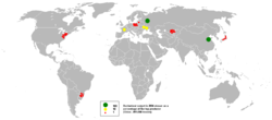 In 2022, world production of buckwheat was 2.2 million tonnes, led by Russia with 55% of the world total, followed by China with 23% and Ukraine with 7%.[6]