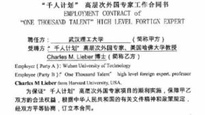 في 28 يناير 2020، أُلقي القبض على تشارلز ليبر، رئيس قسم الكيمياء والبيولوجيا الكيميائية بجامعة هارڤرد، واتهامه جنائياً بتقديم "بيانات كاذبة وهمية ومزورة" إلى وزارة الدفاع الأمريكية حول علاقاته ببرنامج الحكومة الصينية لتجنيد العلماء والباحثين الأجانب.[5] من بين الإتهامات الموجهة للعالم الأمريكي ليبر تأسيس معمل لأبحاث تقنية النانو بدون إعلام جامعة هارڤرد. مكان المعمل: مدينة ووهان الصينية مركز ڤيروس كورونا الجديد