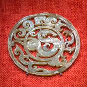 The coiled dragon or snake form played an important role in early Chinese culture. The character for "dragon" in the earliest Chinese writing has a similar coiled form, as do later jade dragon amulets from the Shang period.[13]