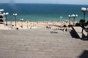 Chornomorsk is situated on the coast of the Black Sea, 12 ميل (20 km) جنوباً من أوديسا.