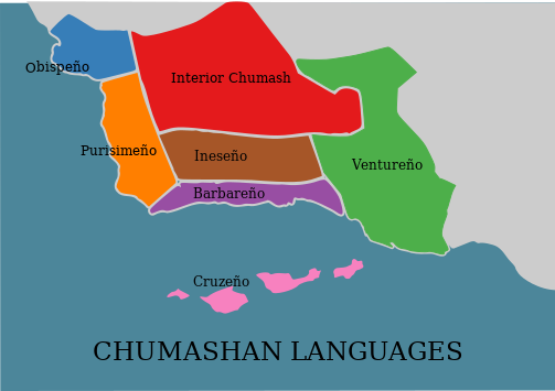 Chumashan is an extinct and revitalizing family of languages that were spoken on the southern California coast by Native American Chumash people, from the Coastal plains and valleys of San Luis Obispo to Malibu, neighboring inland and Transverse Ranges valleys and canyons east to bordering the San Joaquin Valley, to three adjacent Channel Islands: San Miguel, Santa Rosa, and Santa Cruz.[1]