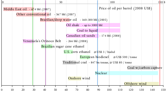 - إجمالي التكلفة النسبية للنظام (في العمود الوجود أقصى اليمين) يعطي التكلفة بالدولار لكل ميگاواط-ساعة والتي ينبغي charged بمرور الوقت لدفع التكلفة الإجمالية. تعكس هذه الحسابات تعديل حساب المستوى المرتفع لثاني أكسيد الكربون الصادر عن محطات الفحم. من تقرير ادارة معلومات الطاقة: