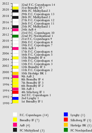| 1991 | Brøndby IF | 26 | 18 | 10 | 6 | 2 | 26 | 15 | +11 |