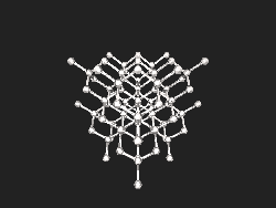 The diamond cubic is sometimes called the "diamond lattice" but it is not, mathematically, a lattice: there is no translational symmetry that takes the point (0,0,0) into the point (3,3,3), for instance. However, it is still a highly symmetric structure: any incident pair of a vertex and edge can be transformed into any other incident pair by a congruence of Euclidean space. Moreover, the diamond crystal as a network in space has a strong isotropic property.[8] Namely, for any two vertices x and y of the crystal net, and for any ordering of the edges adjacent to x and any ordering of the edges adjacent to y, there is a net-preserving congruence taking x to y and each x-edge to the similarly ordered y-edge. Another (hypothetical) crystal with this property is the Laves graph (also called the K4 crystal, (10,3)-a, or the diamond twin).[9]