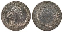 إصدار عام 1796 من عملة الدايم بصورة السيدة ليبرتي على الوجه الأمامي وصورة النسر الصغير على الوجه الخلفي للعملة عملة دايم تعود إلى عام 1800 حيث استبدل النسر الصغير بنسر هيرالدي كبير