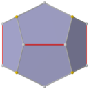 A pyritohedron has 30 edges: 6 corresponding to cube faces, and 24 touching cube vertices.  | |