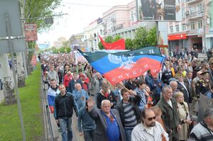 جمهورية دونتسك الشعبية (روسية: Донецкая народная республика؛ Donétskaya naródnaya respúblika)، كانت دولة معلنة من طرف واحد في شرق أوكرانيا تتشارك الحدود مع روسيا وجمهورية لوخانسك الشعبية،[6][7] أُعلنت في 7 أبريل 2014 من قِبل نحو 100 ناشط ومحتج سياسي ناطقين بالروسية؛ ويحتلون حالياً مبنى الإدارة الإقليمية في مدينة دونيتسك الأوكرانية.[8][9][10][11] سلطات جمهورية دونتسك الشعبية لم تمتد إلى حد كبير فيما وراء المباني الادارية المحتلة ونقاط التفتيش الانفصالية المسلحة، [12] وخارج المدن وفي البلدات الأصغر السيطرة غير مؤكدة.[13] في 24 مايو، أعلنت هاتان الجمهوريتان اتحادهما في الولايات الاتحادية الروسية الجديدة.[14]