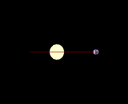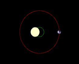 Otto Struve proposed in 1952 the use of powerful spectrographs to detect distant planets. He described how a very large planet, as large as Jupiter, for example, would cause its parent star to wobble slightly as the two objects orbit around their center of mass.[3] He predicted that the small Doppler shifts to the light emitted by the star, caused by its continuously varying radial velocity, would be detectable by the most sensitive spectrographs as tiny redshifts and blueshifts in the star's emission. However, the technology of the time produced radial-velocity measurements with errors of 1,000 m/s or more, making them useless for the detection of orbiting planets.[4] The expected changes in radial velocity are very small – Jupiter causes the Sun to change velocity by about 12.4 m/s over a period of 12 years, and the Earth's effect is only 0.1 m/s over a period of 1 year – so long-term observations by instruments with a very high resolution are required.[4][5]