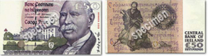 Hyde is notable in that he was the only leader of independent Ireland to be featured on its banknotes, here on a Series C Banknote of IR£50.
